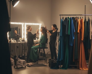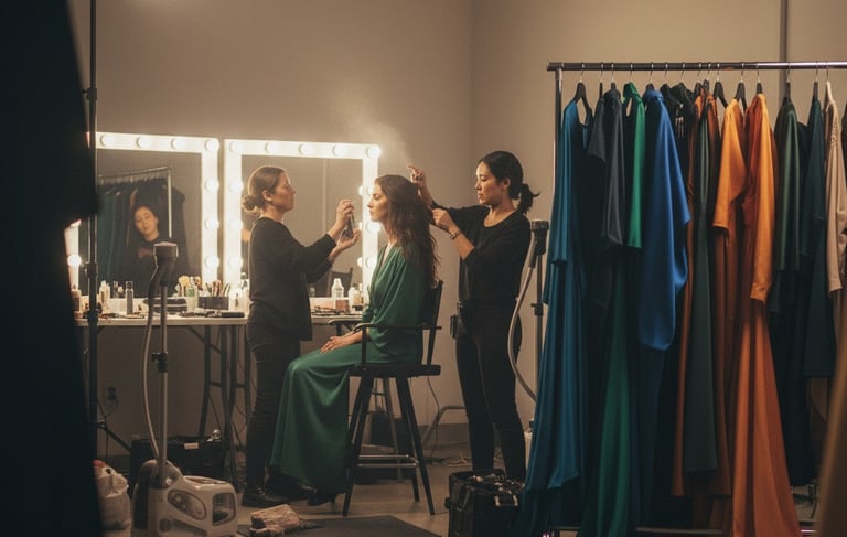 Hair and Makeup: If professional hair and makeup are required, ensure the artists are booked and have an adequate, well-lit space for preparation on site.